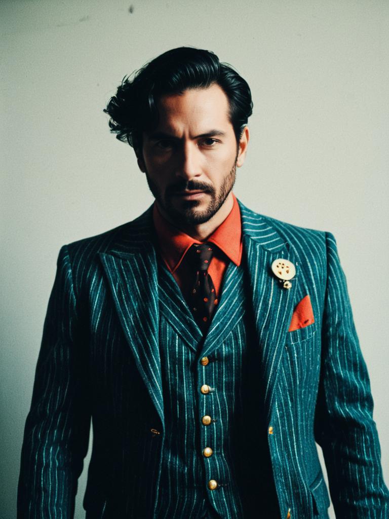 Man in Themed Outfit, photorealistic fashion portrait, cinematic realism