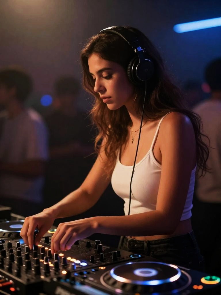 Focused Female DJ in Club