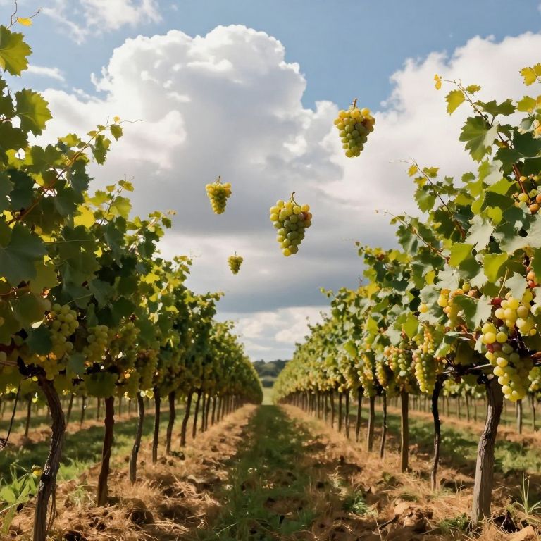 Magical Vineyard with Flying Grapes