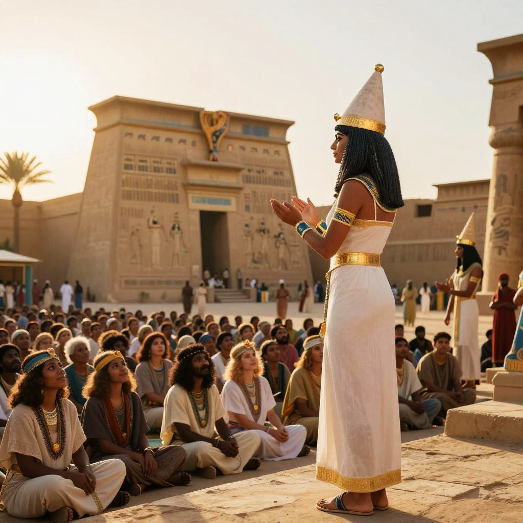 In the heart of ancient Roman city, a proud gladiator reveals his battle plans to curious onlookers, as the sun casts a warm glow over the vibrant scene.