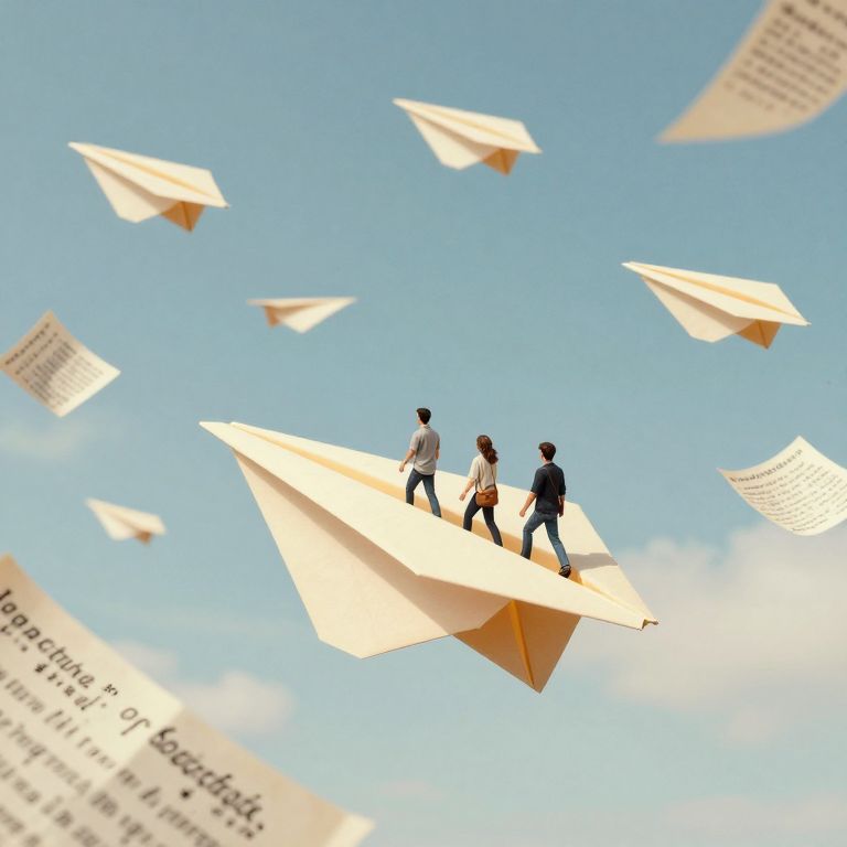 Librarians ride giant paper airplanes through a sky filled with drifting sonnets, collecting fragments of forgotten epics.