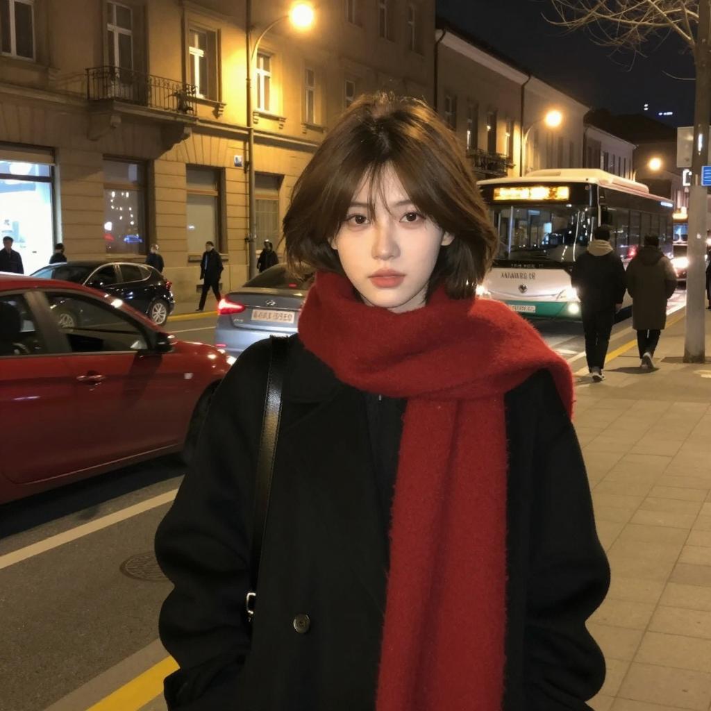 Blurry photograph of a person with long brown hair in a dark blue, high-collared outfit, leaning forward in a dimly lit, wet subway tunnel. The walls have beige and black tiles, and the floor reflects the overhead lights.