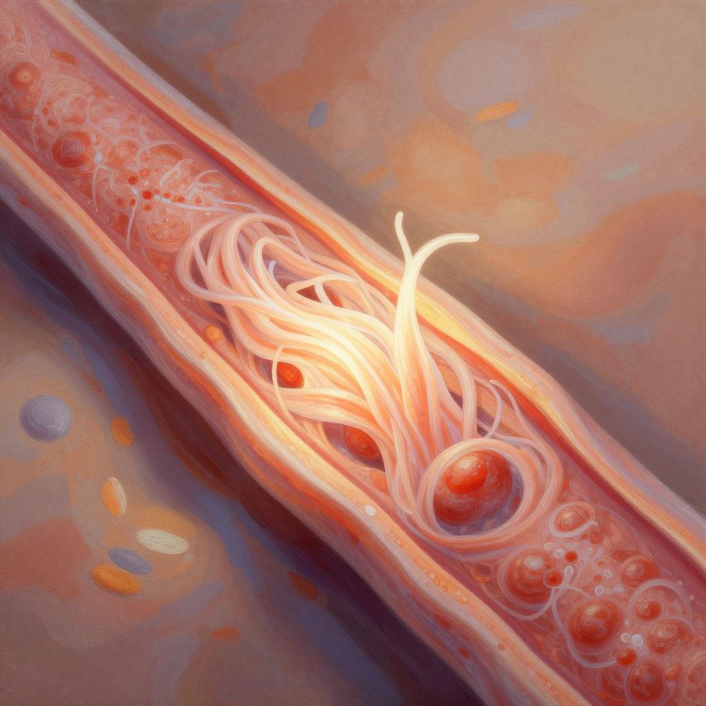 Healing human tendon tissue regenerating, soft glowing fibers with a warm color palette, artistic representation of cellular repair, semi-abstract background, conveying strength and restoration, painted texture style
