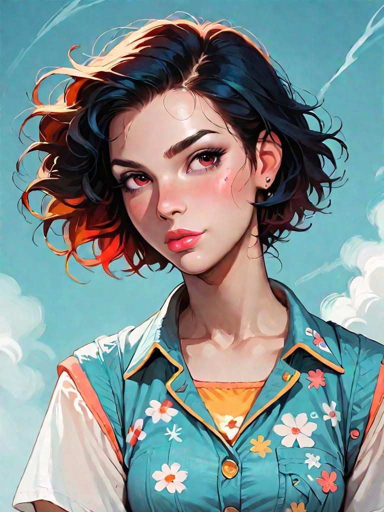 1girl, realistic face, Floral print tankini, deep navy background, stretchy spandex material, halter neck design, removable padding, classic bikini cut, coordinating beach vest, breathable linen, button-up front, rolled sleeves, tropical vibe, ideal for beach vacations.