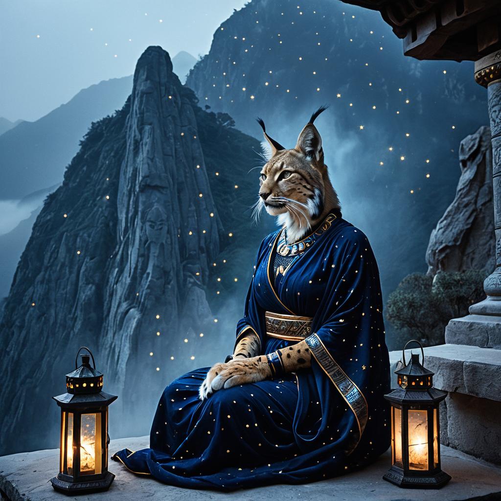 Lynx-headed Goddess in Starry Robes at Mountain Temple
