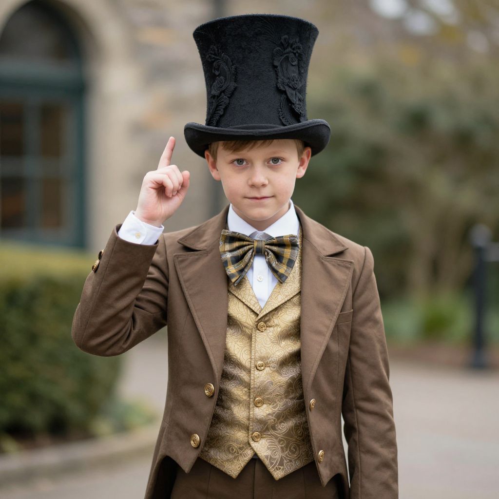 Mad Hatter Costume Original, young boy dressed in a top hat and jacket
