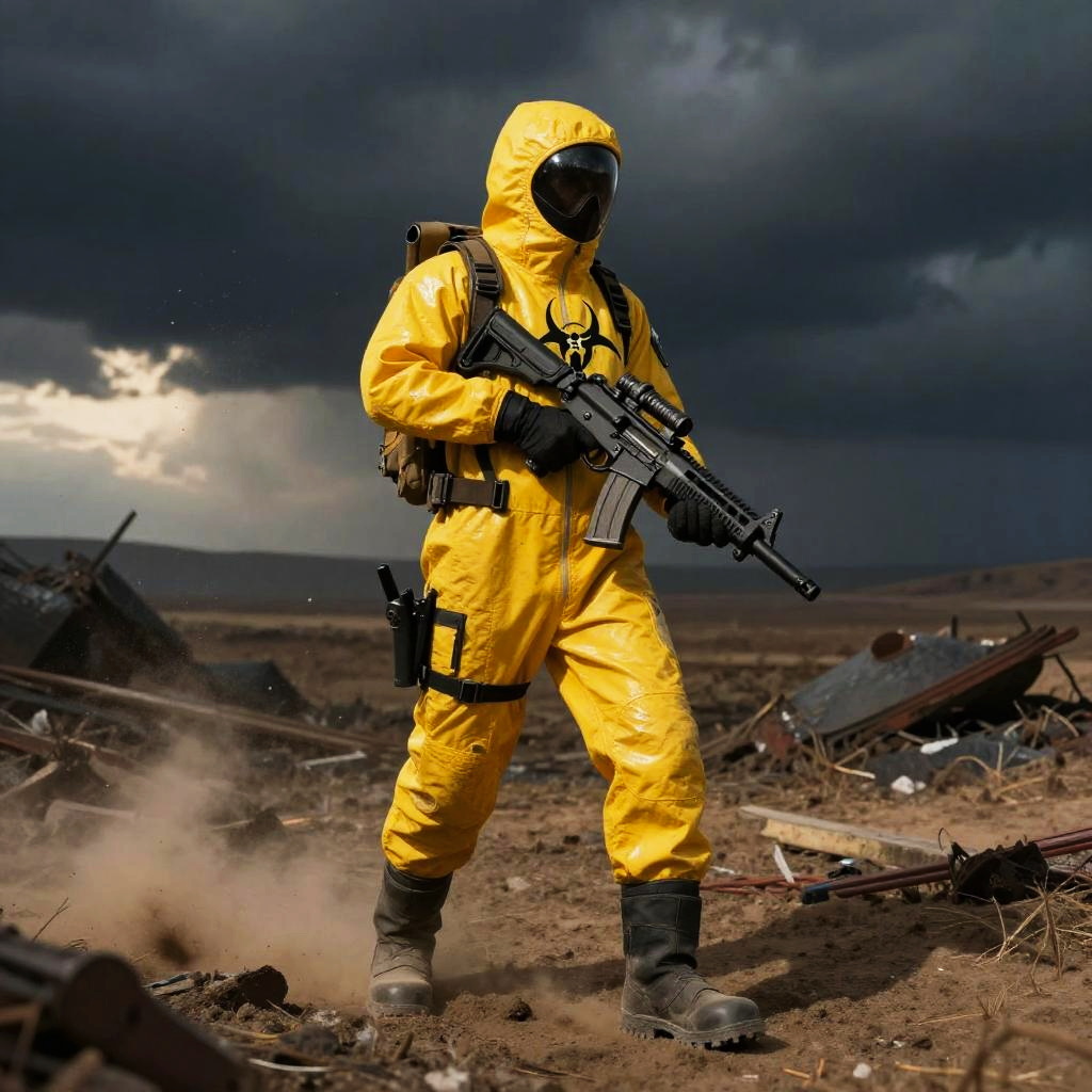 Hazmat Soldier in Contaminated Wasteland