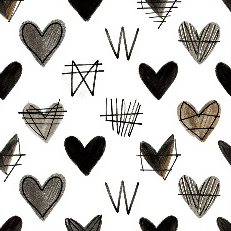 Black aesthetic heart wallpaper designed as a seamless pattern of stylized hearts and geometric lines in various shades of black and ebony, creating a sophisticated and contemporary mood for device screens.