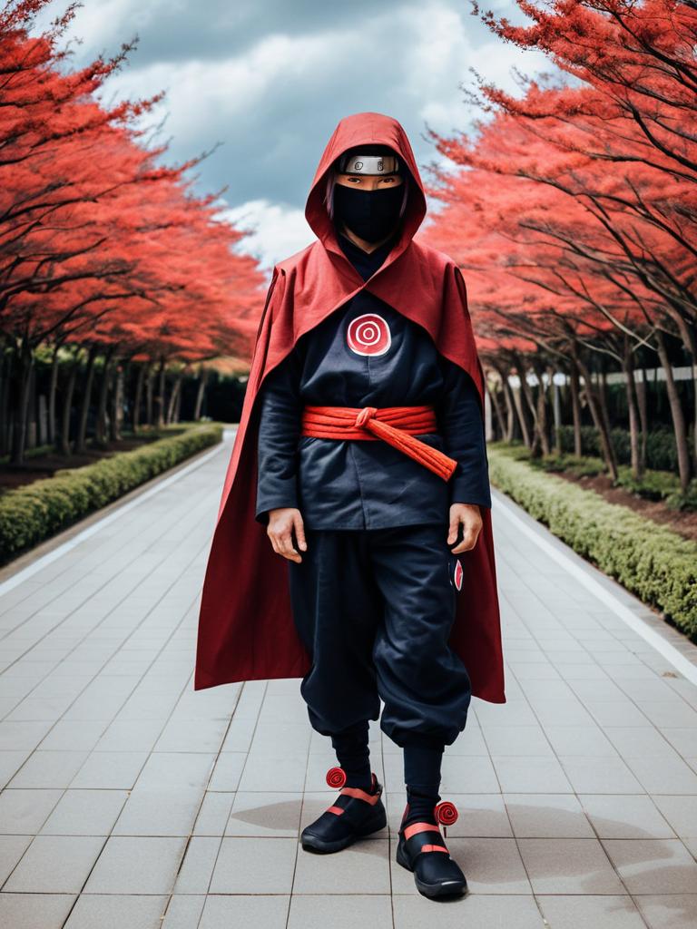 Man in Naruto Akatsuki Costume, full-body cosplay photo with red cloud cloak