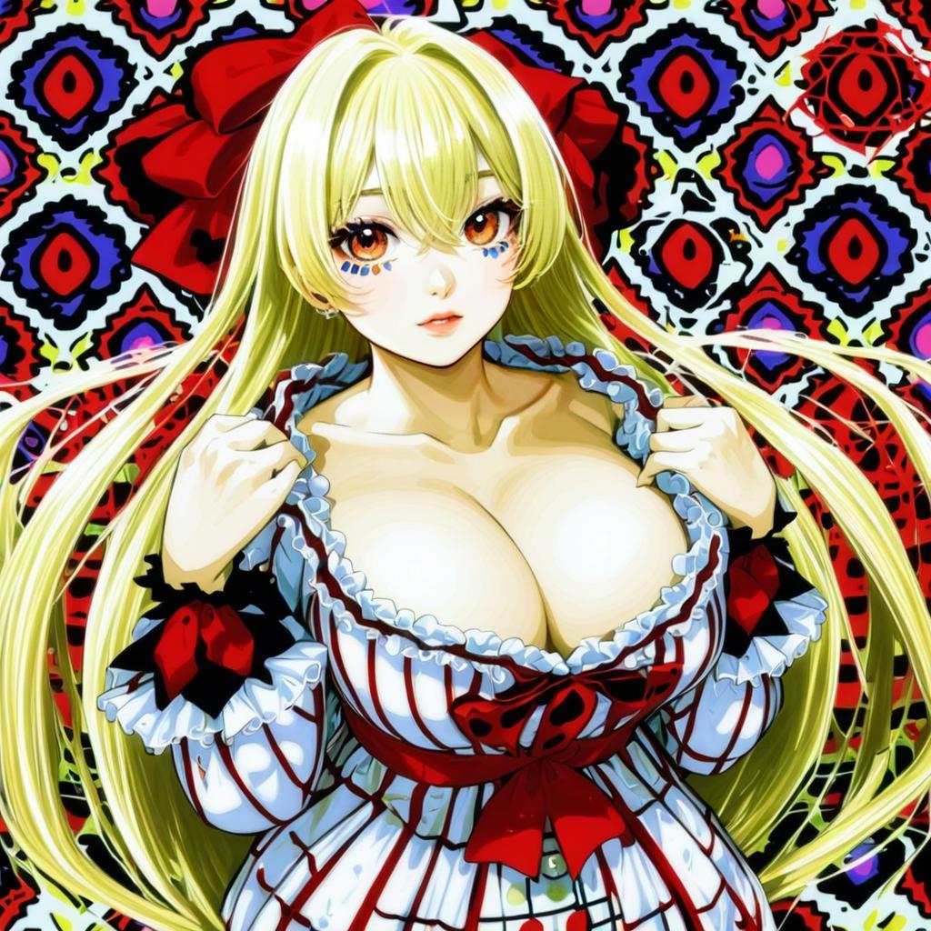 Arakune, blazblue, 1girl, monster, blonde hair, large breasts, by artist infukun, illustrious