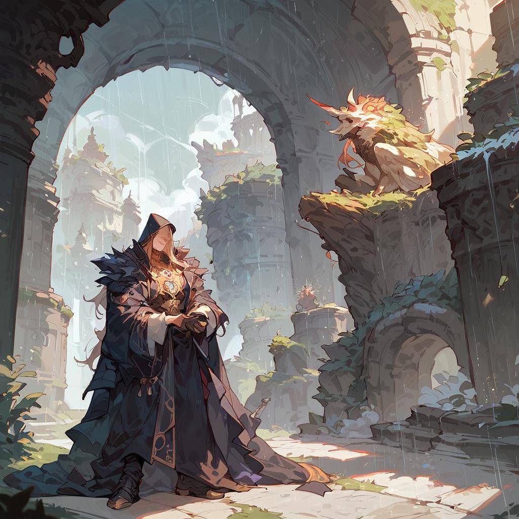 Elven Warrior and Orc in Ruined Ancient Castle