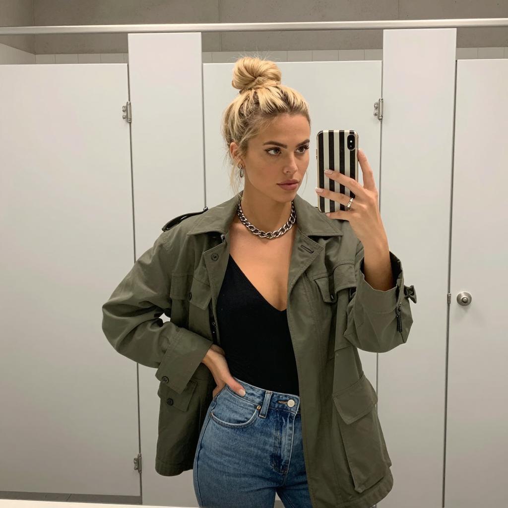 Casual Bathroom Selfie of Blonde Woman