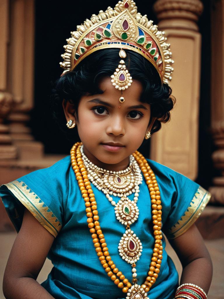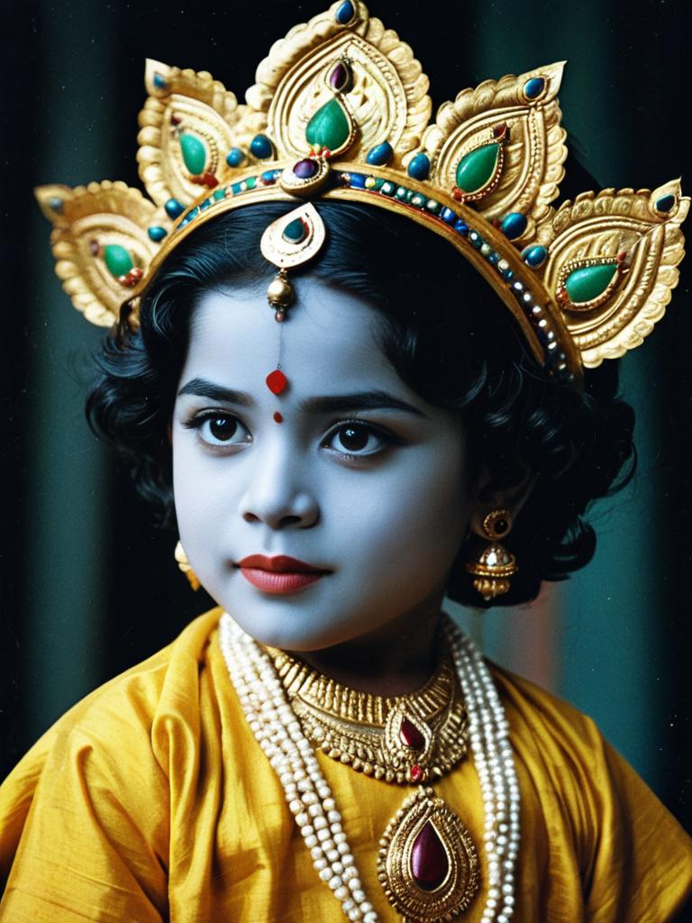 Child in Krishna Jayanthi Costume, cinematic realism, divine cultural portrait