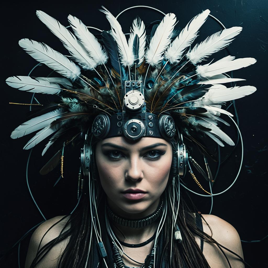 Cyberpunk Woman with LED Light Headgear