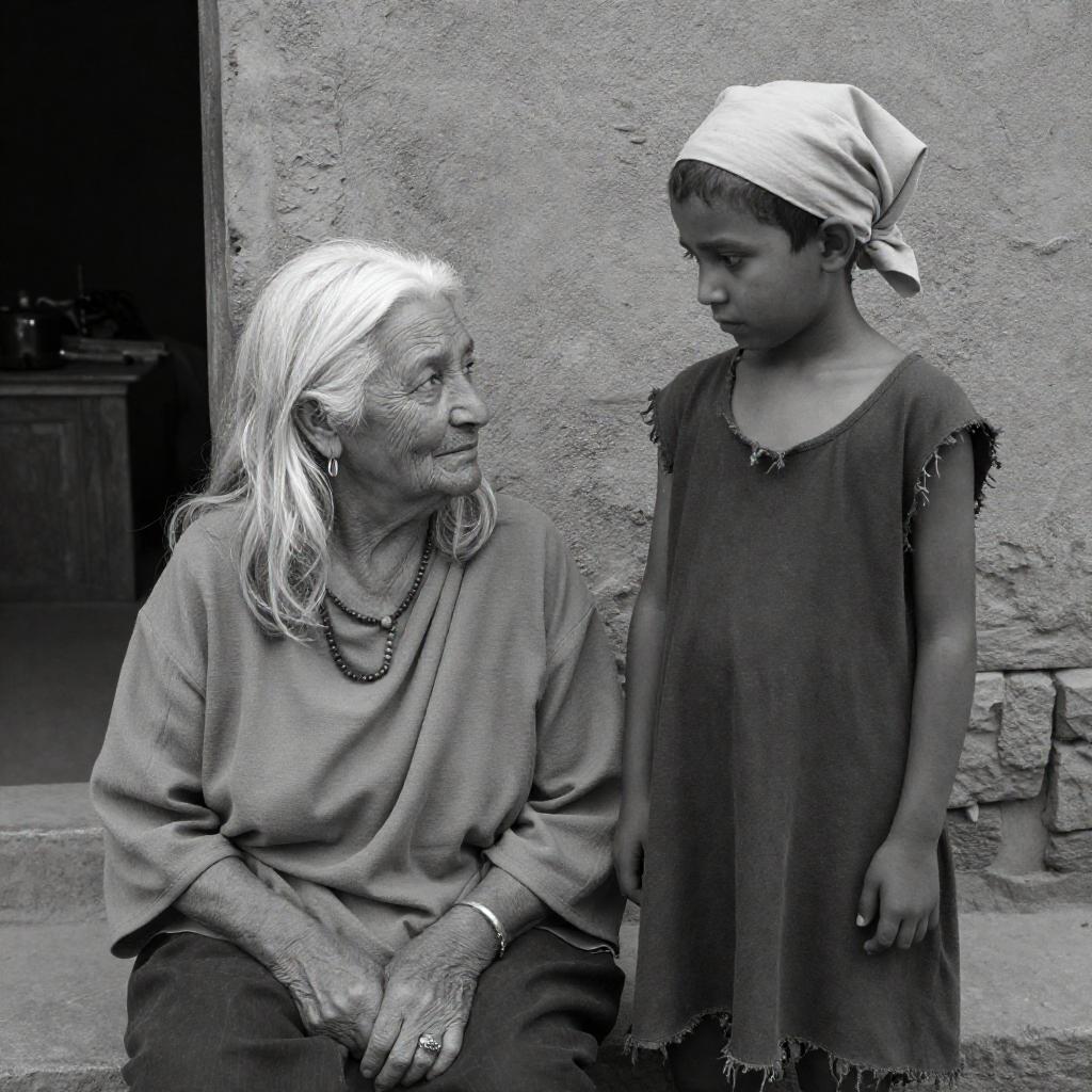 Somber Moments: Elderly Woman and Boy