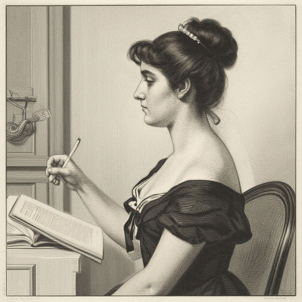 James Tissot - Histoire Ennuyeuse - Uninteresting Story - etching and drypoint - profile of elegant woman