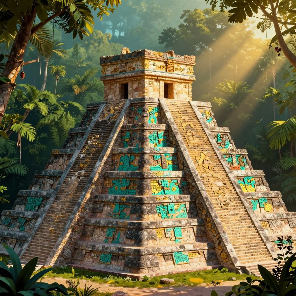 Ancient Mayan Pyramid in Jungle