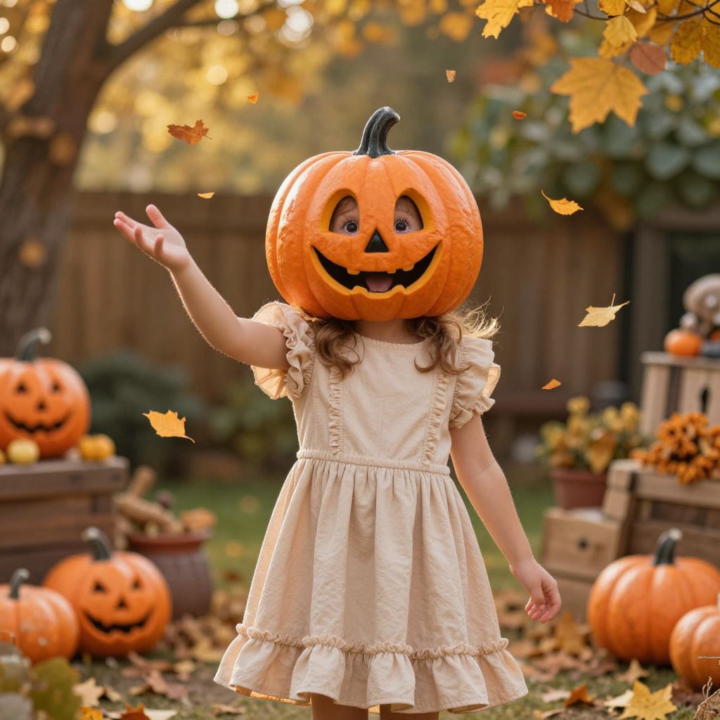 Cheerful Girl in Cozy Pumpkin Costume