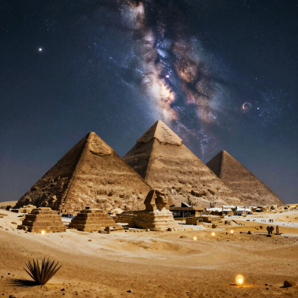 Gizeh Pyramids Under Starry Night