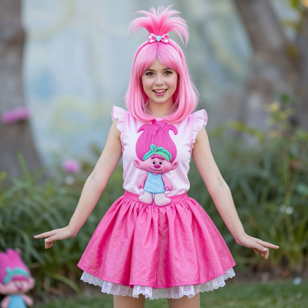 Trolls World Tour Girl Classic Poppy Costume, woman with pink hair and a pink wig