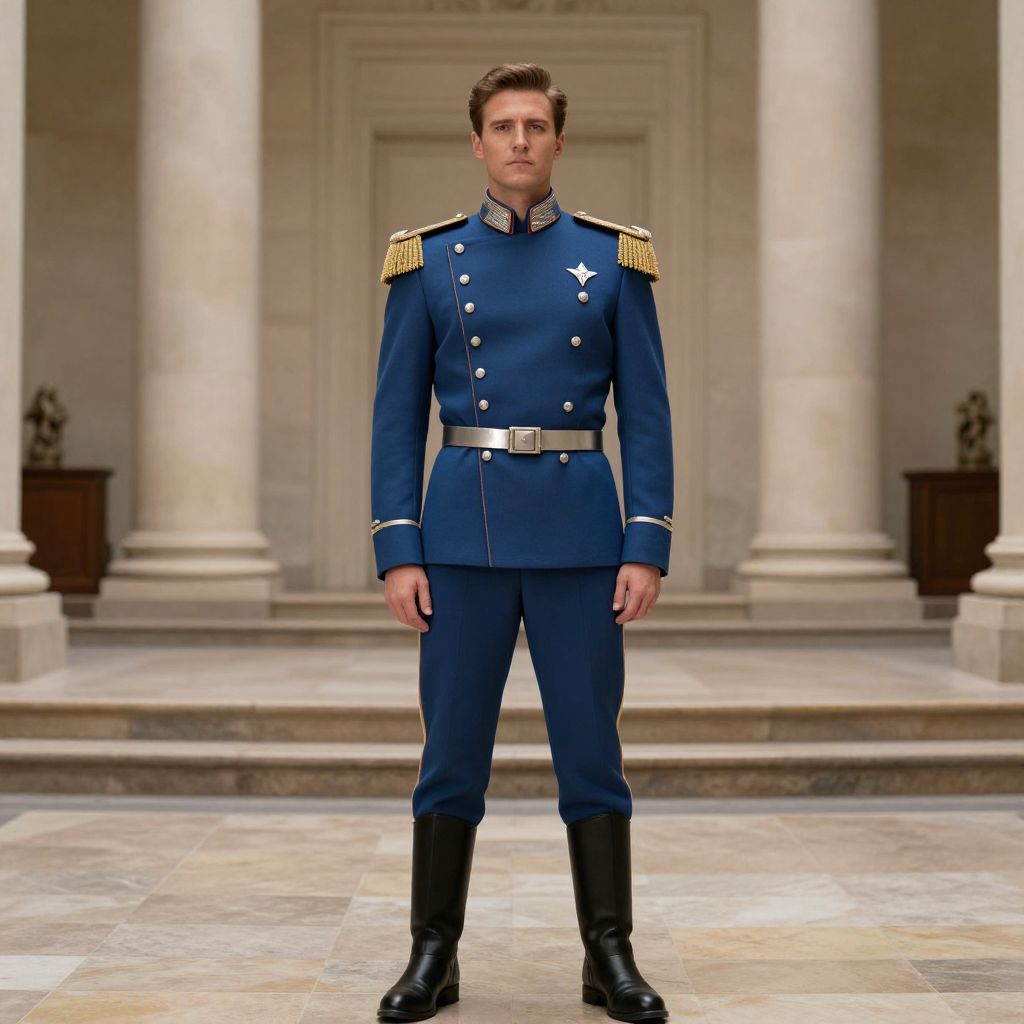 Imperial Admiral Costume, man in a blue uniform standing in a hall