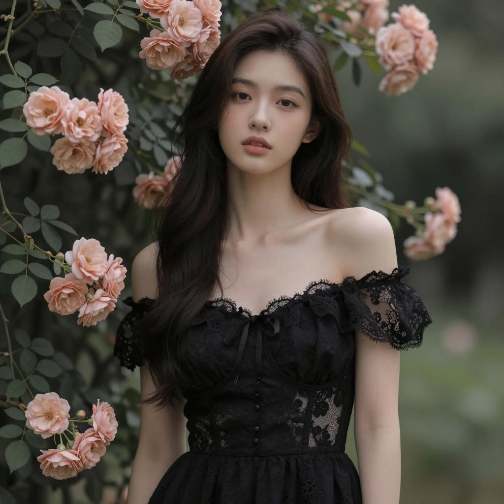 Elegant Woman in Lace Dress with Flower