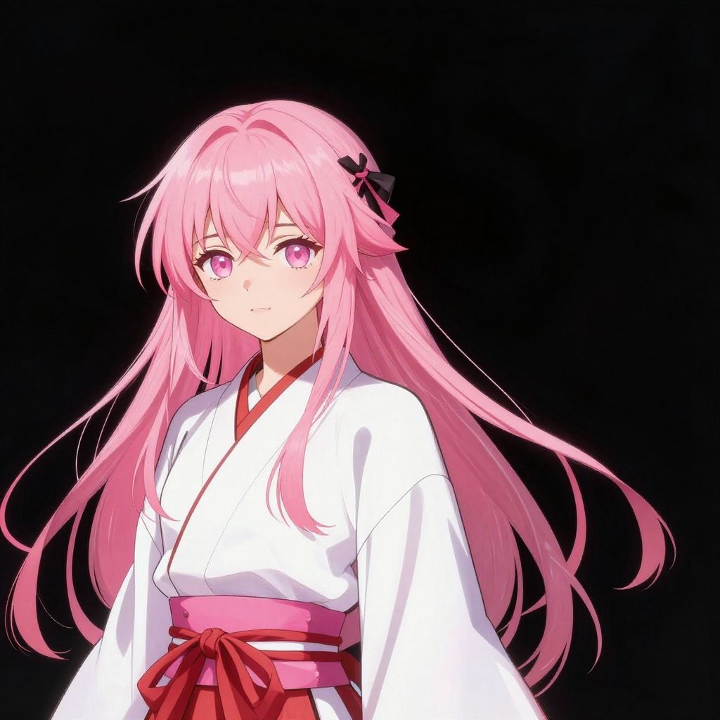 1girl, pink hair, miko, wallpaper, high contrast, colorful