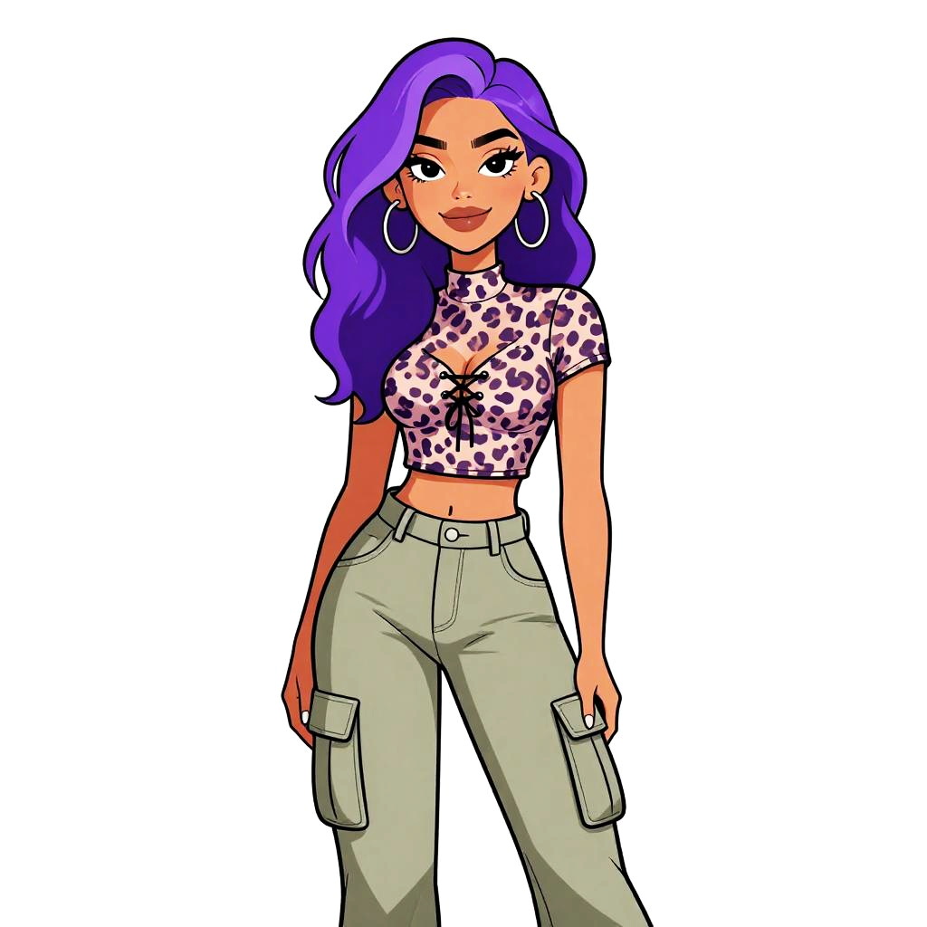 Woman with pretty face and pretty hair. Woman, contemporary, two-piece coordinating set in white with black grid pattern, crop top with high round neckline and sleeveless design featuring a side cut-out, flared skater skirt with high waist, short hemline, solid white background. --sref 1467