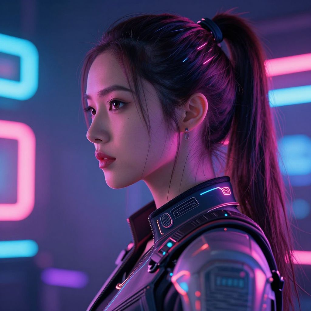 Cyberpunk Neon Woman Portrait