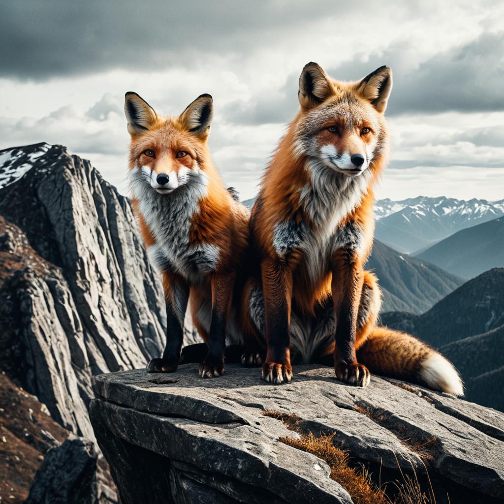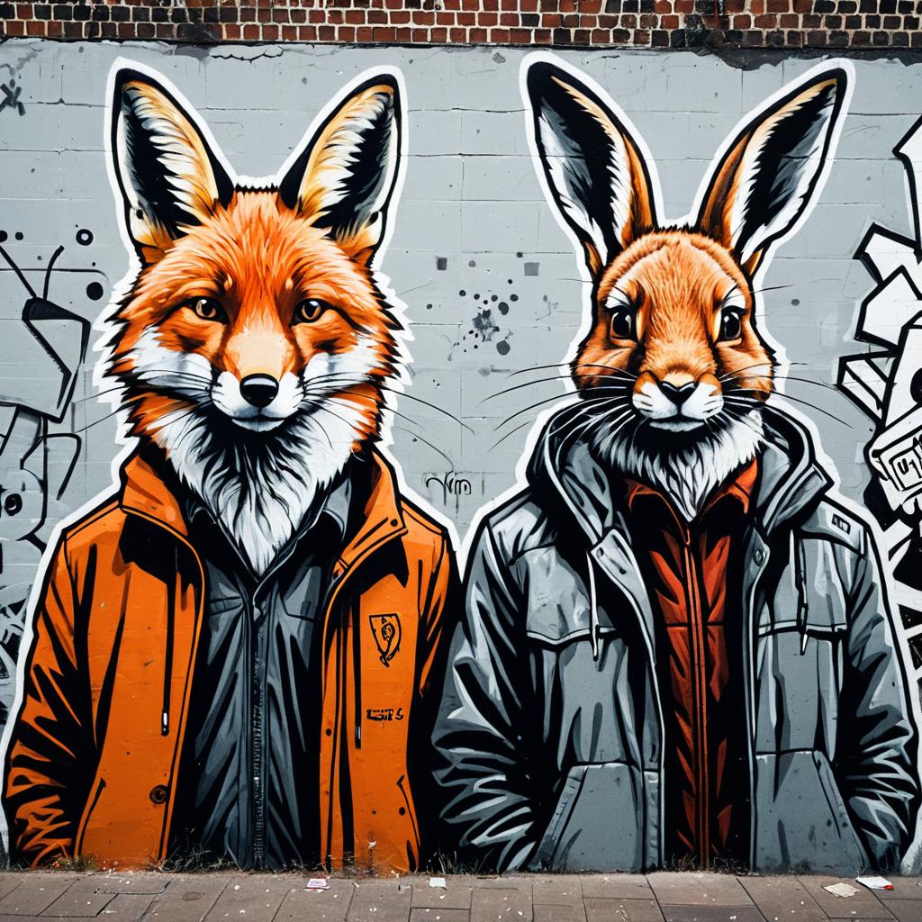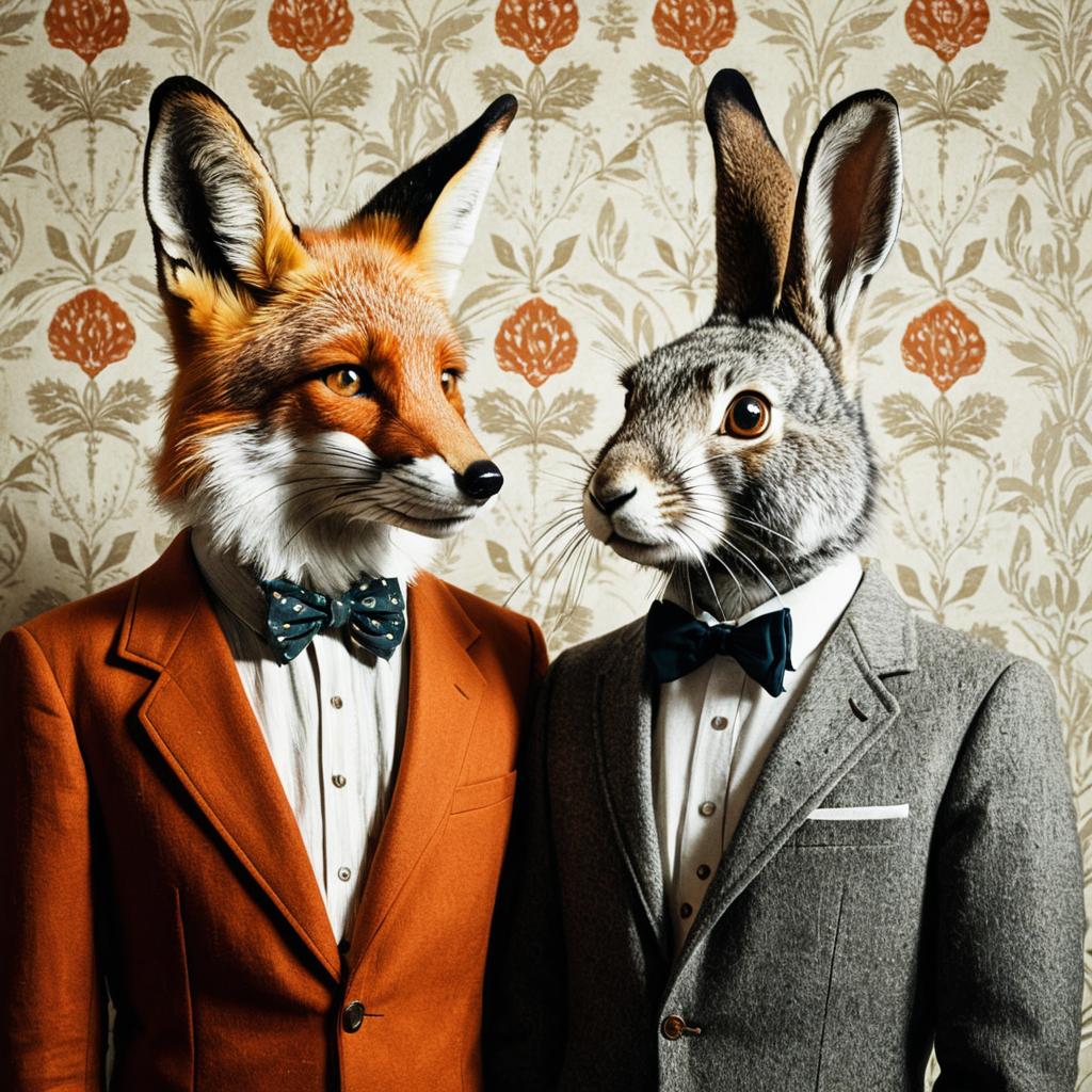 Portrait of two humanoid animals - raccoon and badger. They are depicted on a steampunk workshop. The characters exhibit thoughtful looks, and each is styled with unique details that reflect their personalities. Rendered in realistic