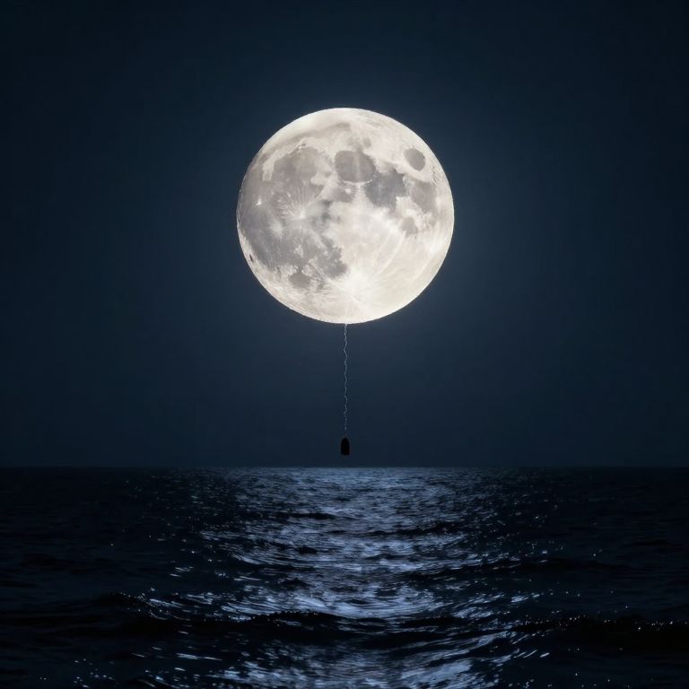 An ethereal cascade of time and memory splashes forth from a luminous moon, weaving ripples of serenity and introspection across a cobalt sea that echoes with the whispers of forgotten dreams.