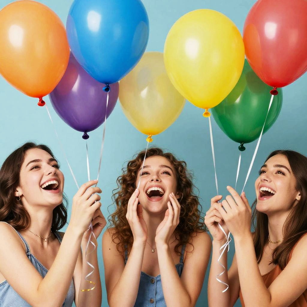 Blonde Tween with Colorful Balloons