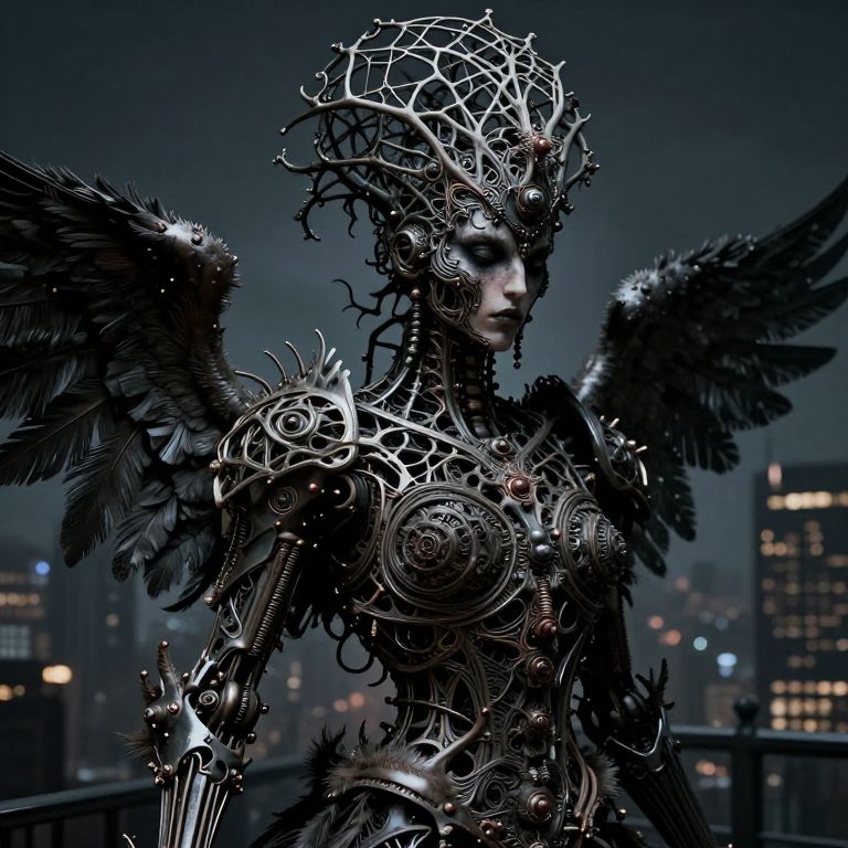 Woman made of vanes, high detail, 8k, ornate, masterpiece, complex, haze, film still from the movie directed by denis villeneuve with art direction by pablo picasso and greg rutkowski, alex gray
