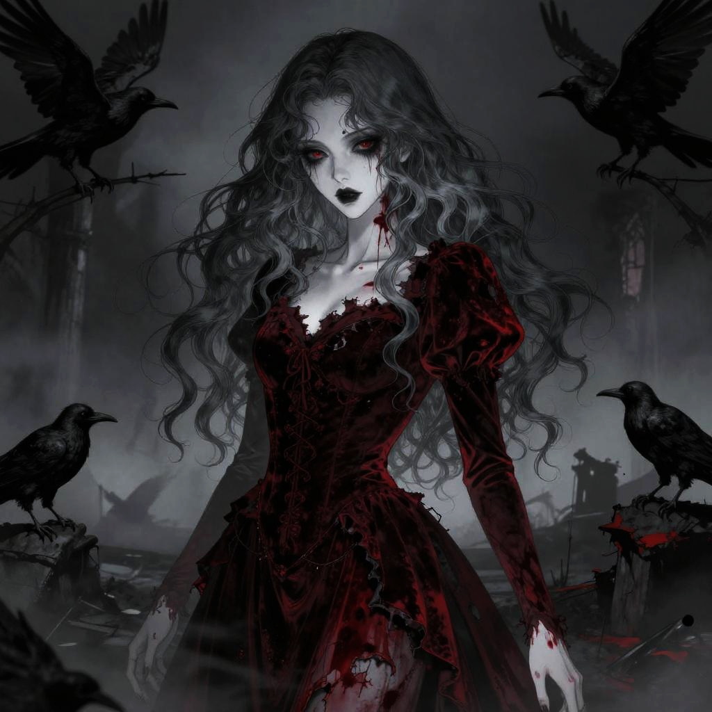 Dark Gothic Woman with Red Eyes