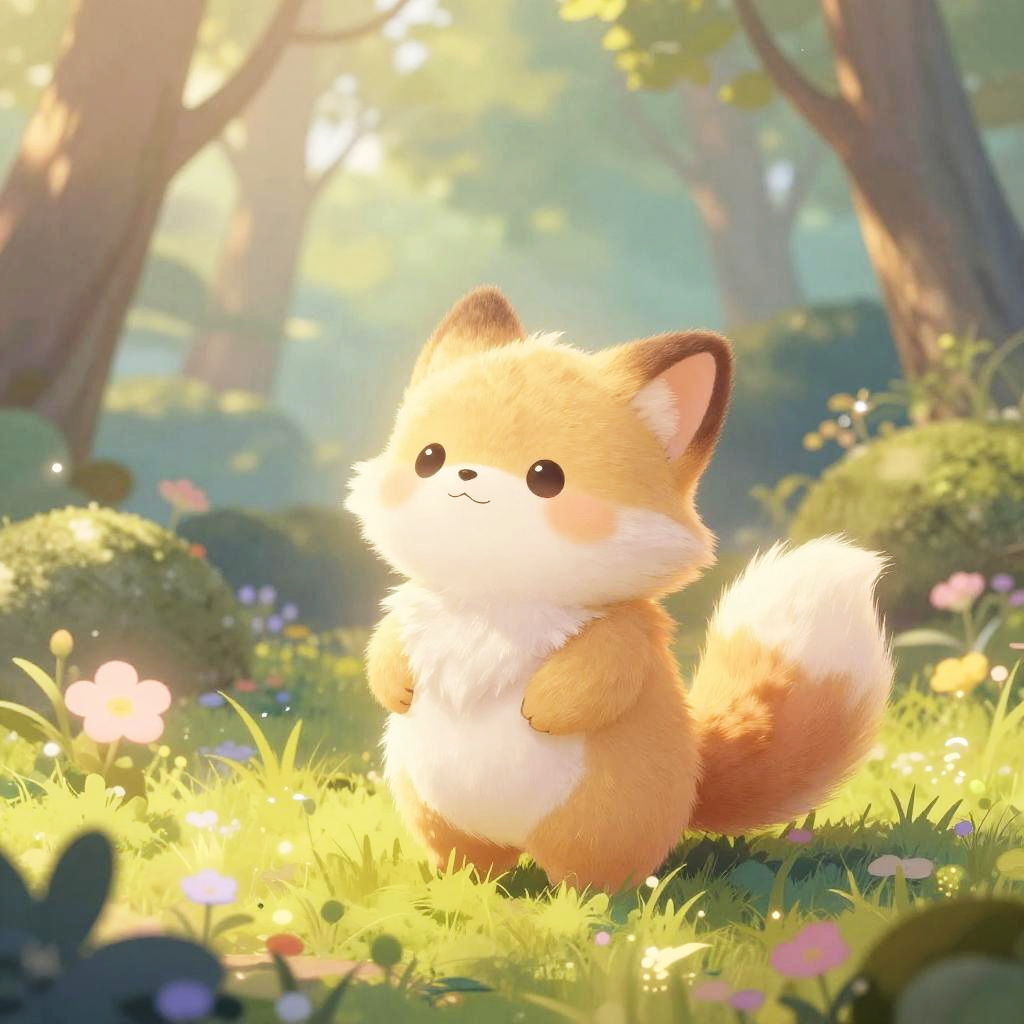 Illustration of a cute furry fox character relaxing on a soft bed with pastel-colored cushions in a warmly lit room. The character is designed with intricate soft shading, featuring fluffy orange and white fur, closed eyes, and a content expression. The scene emphasizes a gentle, inviting atmosphere enhanced by natural sunlight from a nearby window.