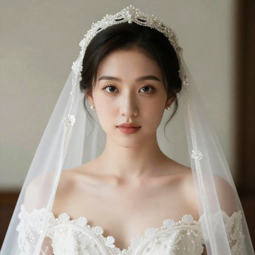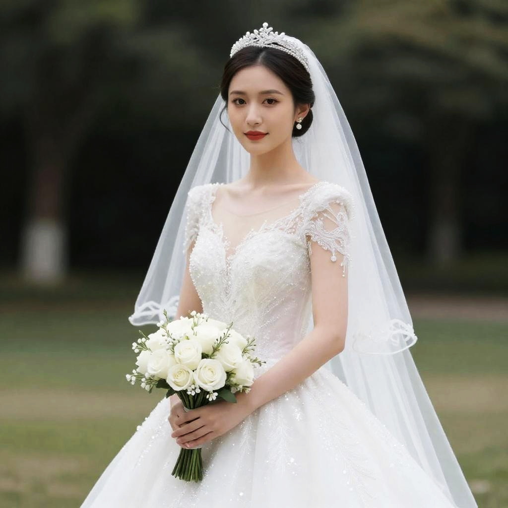 Traditional Bridal Veil, a close up of a woman wearing a wedding dress and veil