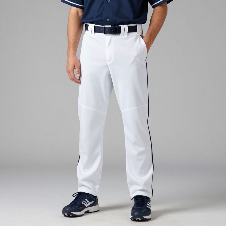 "White Baseball Pants, baseball player standing in a studio with his hands in his pockets"