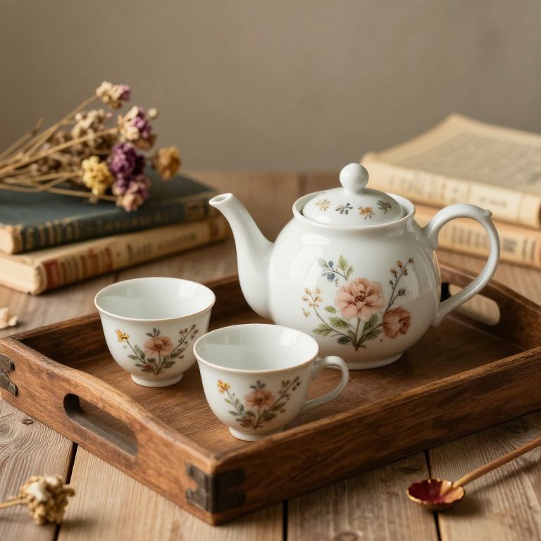 Rustic Ceramic Tea Set Scene