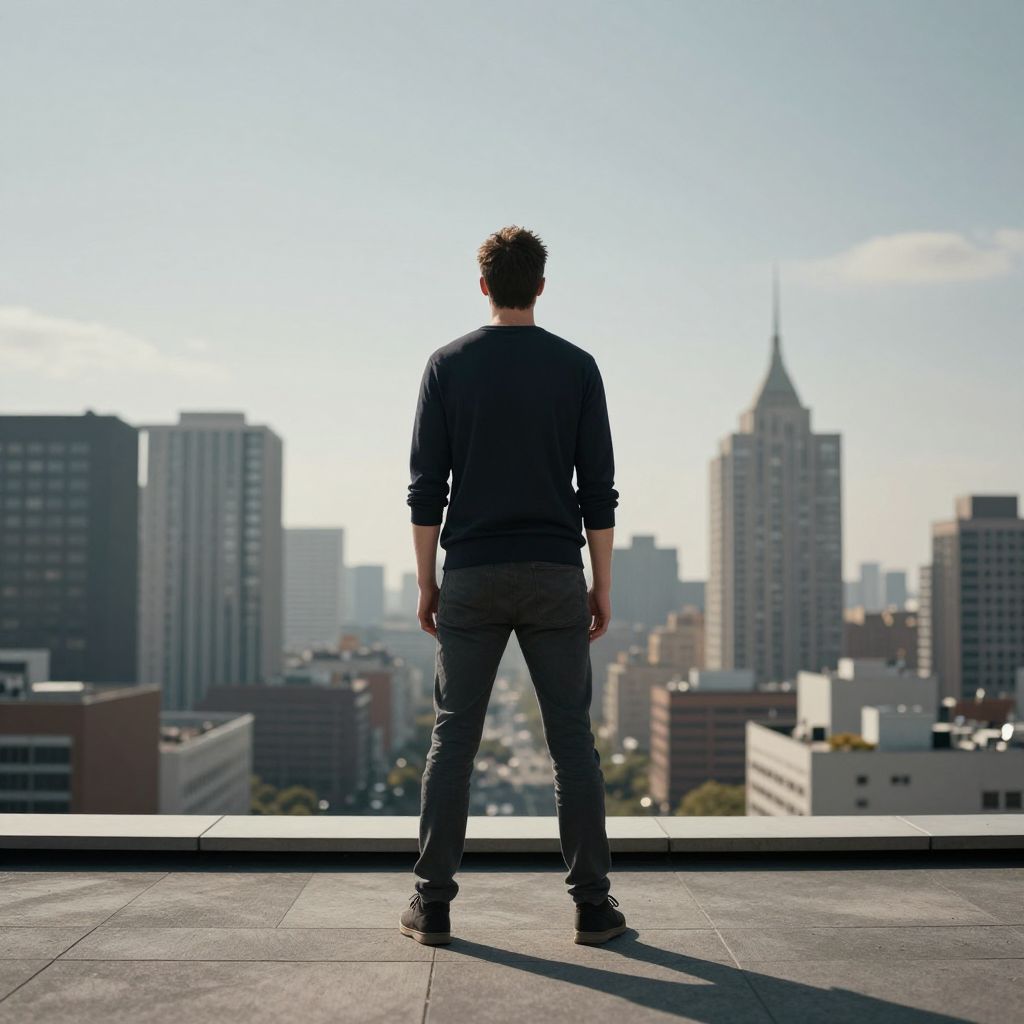 Tall Man Overlooking Cityscape