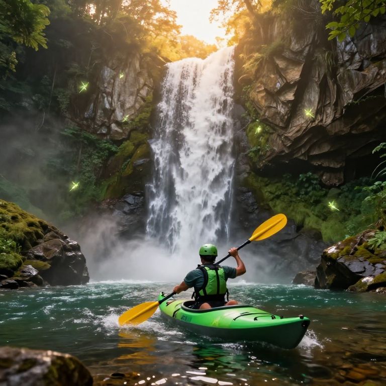 Adventurous Kayak Journey by Waterfall