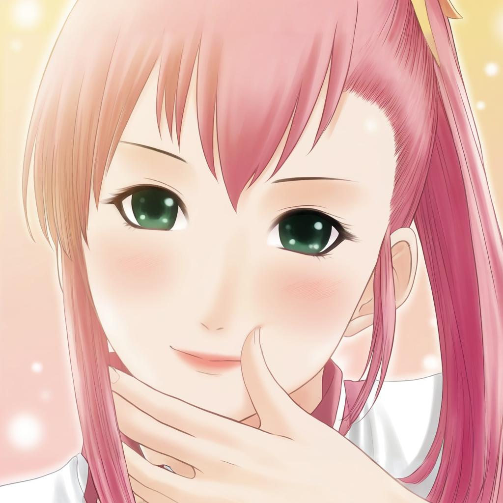 Hana (pangya), pangya, 1girl, green eyes, pink hair, long hair, ponytail, by artist xter, leet