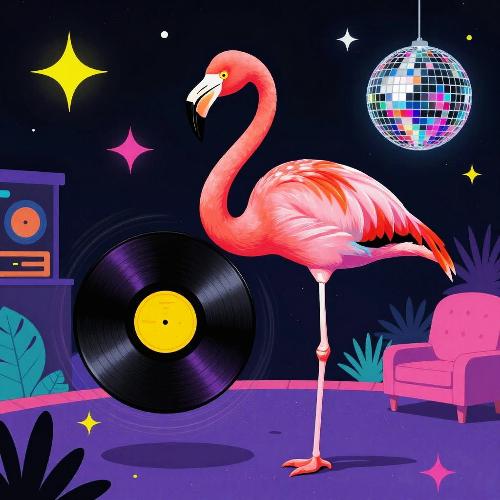 Lowbrow art of a DJ panda mixing tunes on a space turntable, influenced by Jean-Michel Basquiat and Yayoi Kusama, with eccentric comic linework with vivid color scheme, funky and vibrant, set in a cosmic nightclub
