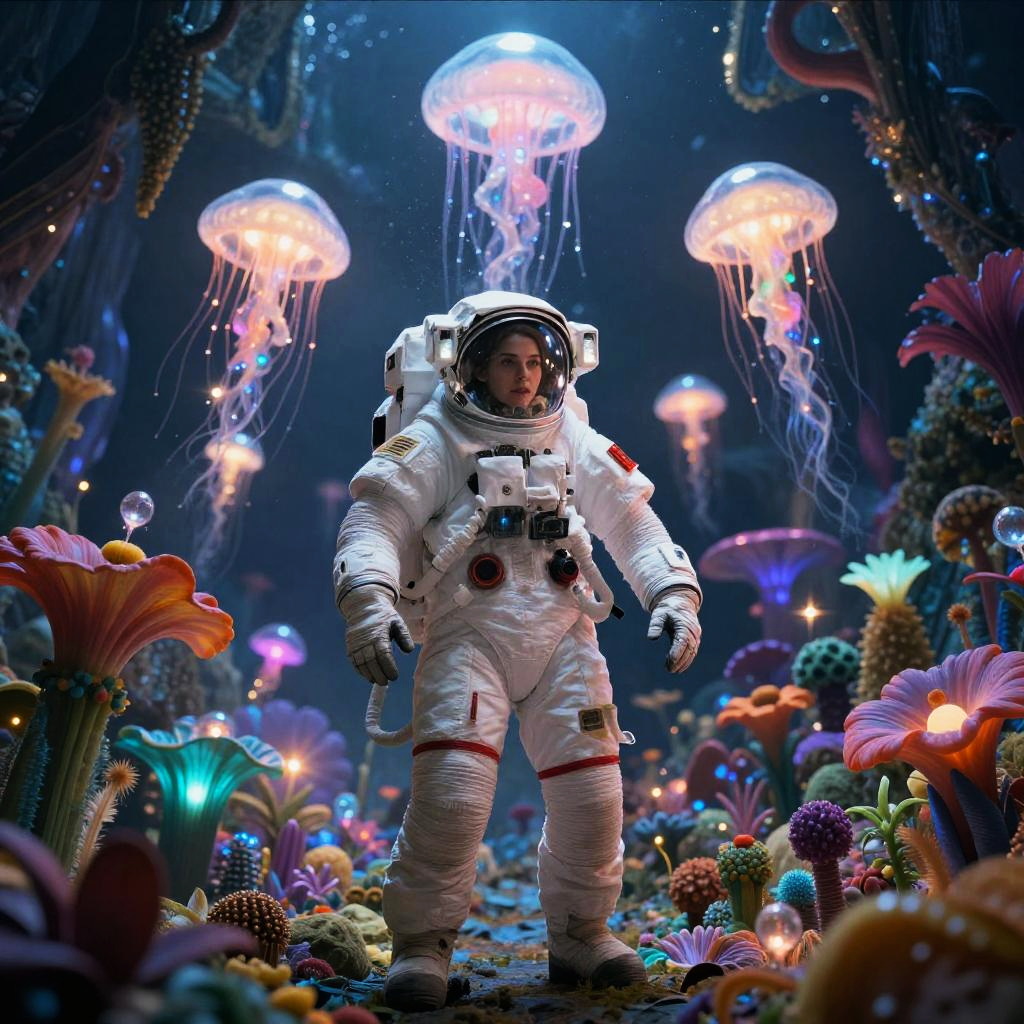Ethereal Astronaut in Vibrant Alien World