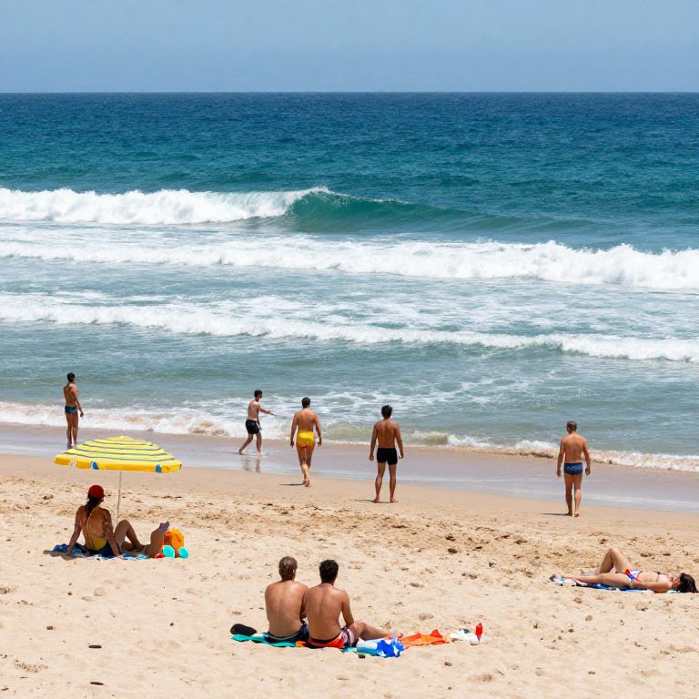 Ink Saturation show a scene at a beach, sunny summer day, sun bathers, big waves, fun, excitement, UHD 4K, ultra-realistic,