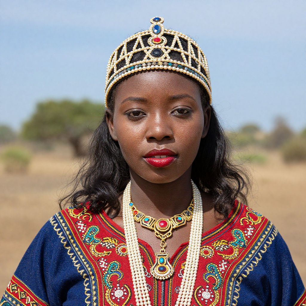 "Zulu Traditional Clothes Woman Costume, a close up of a woman wearing a headdress and a necklace"