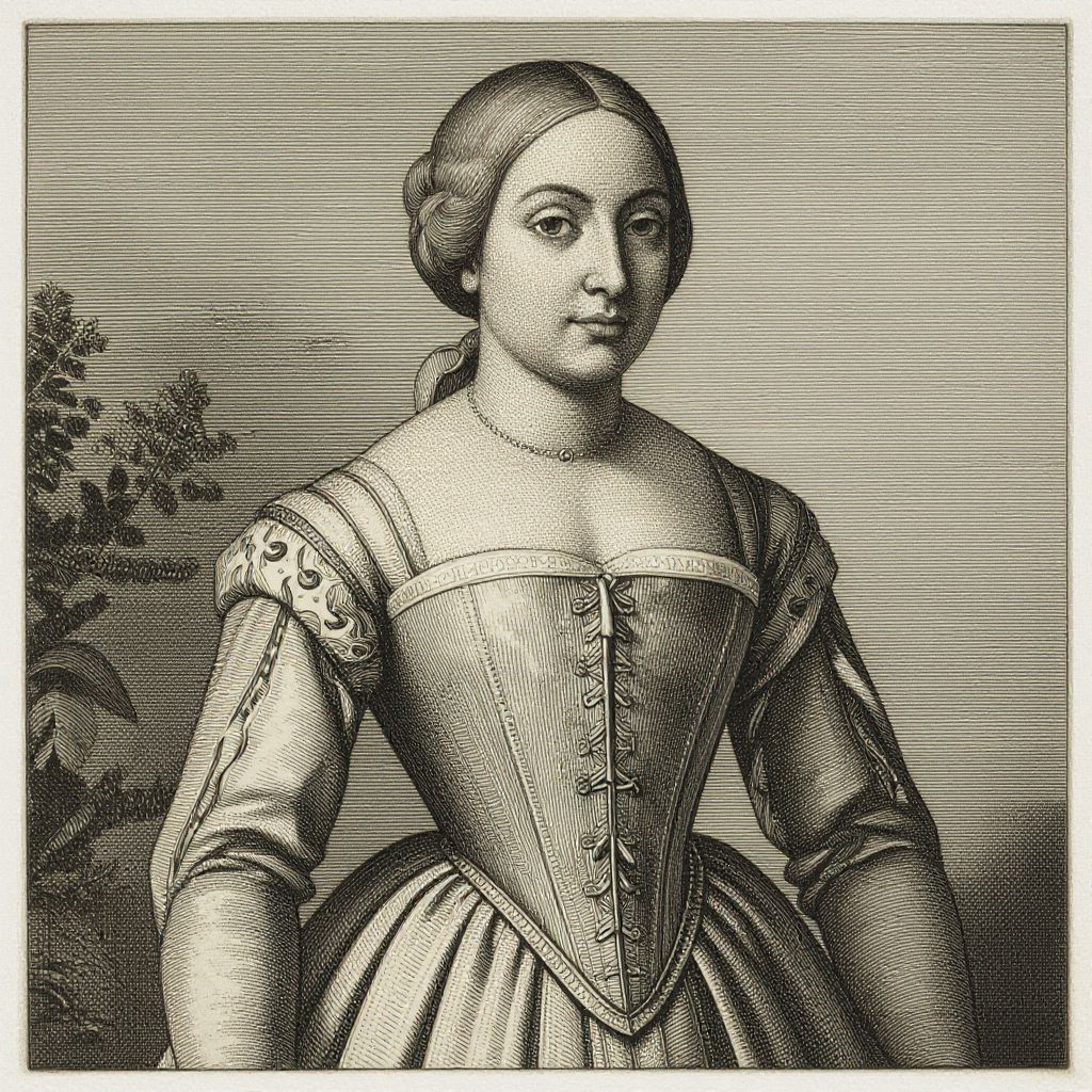 A finely detailed woodcut engraving by Lucas Cranach the Elder, depicting an effigy of a young woman in a fitted corset dress, exemplifying the intricate line work and classical portraiture characteristic of German Renaissance art.