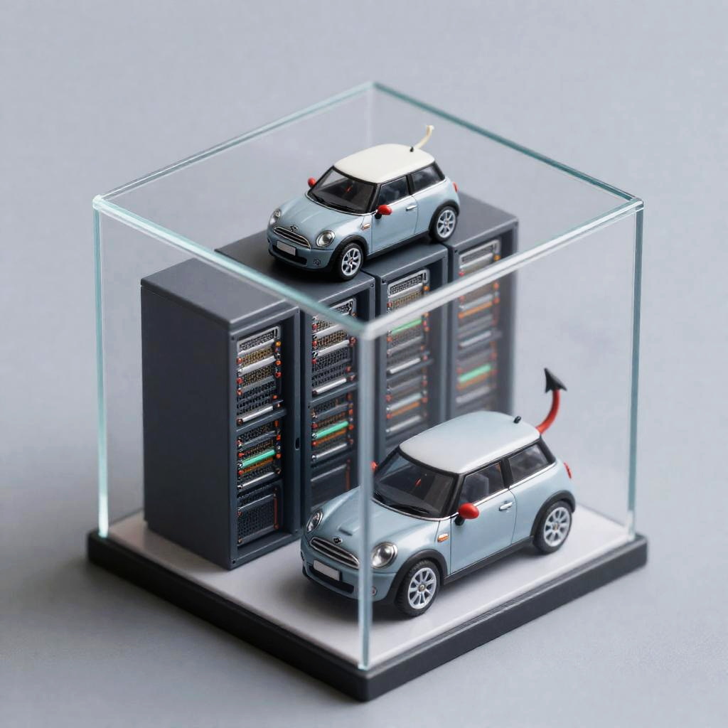 Mini\(ttp\), (8k, RAW photo, best quality, masterpiece:1.2), (realistic:1.37), demon_tail, in sever room), miniature, landscape, (isometric), glass box