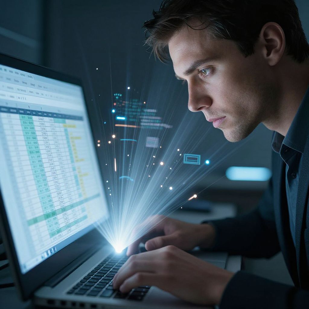 Focused Man Working on Futuristic Spreadsheet