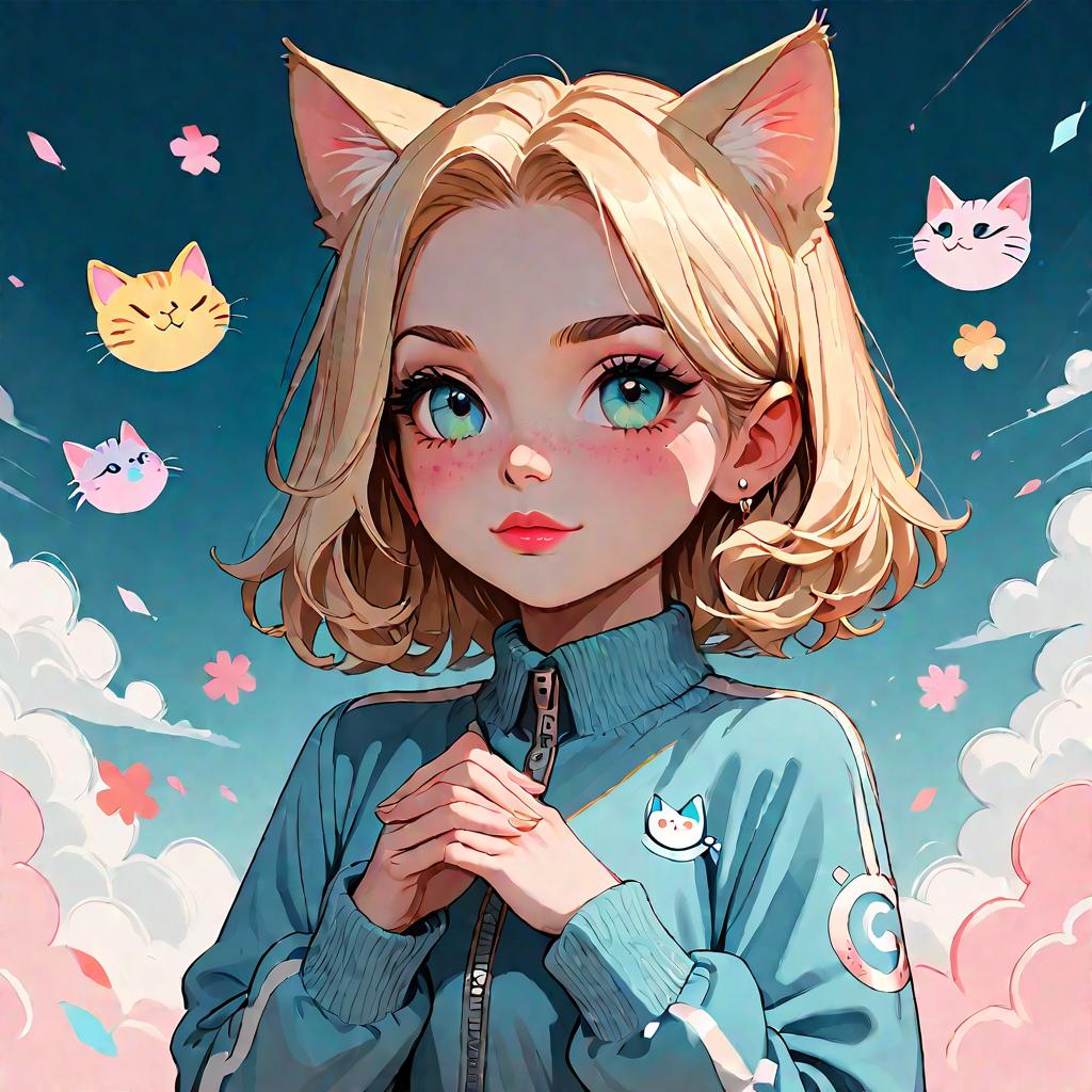 Score_9, score_8_up, score_7_up, score_6_up, score_5_up, score_4_up, dripjacket, own hands together, necoarcslit pupils, chibi, :3cat ears, blonde hair