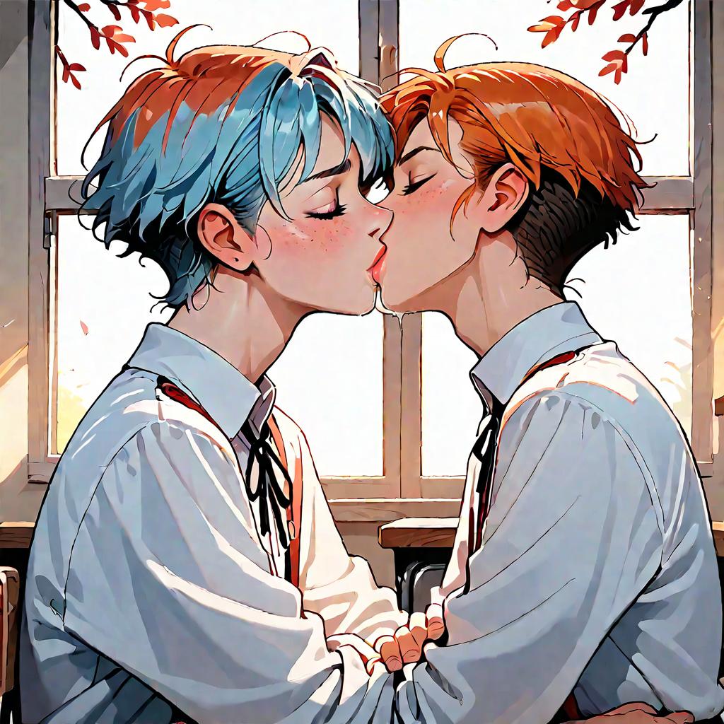 Anime Boys Selfie with Falling Leaves